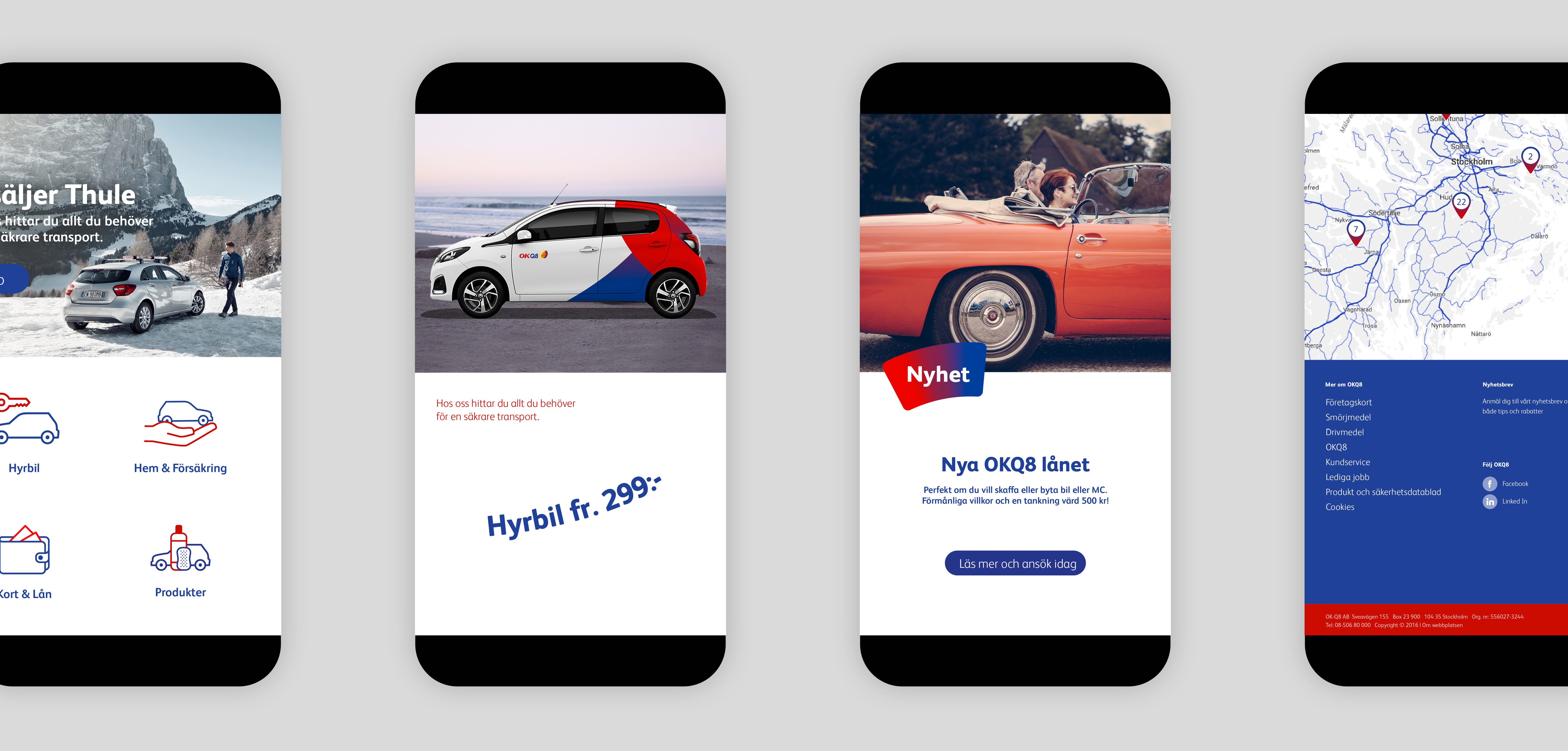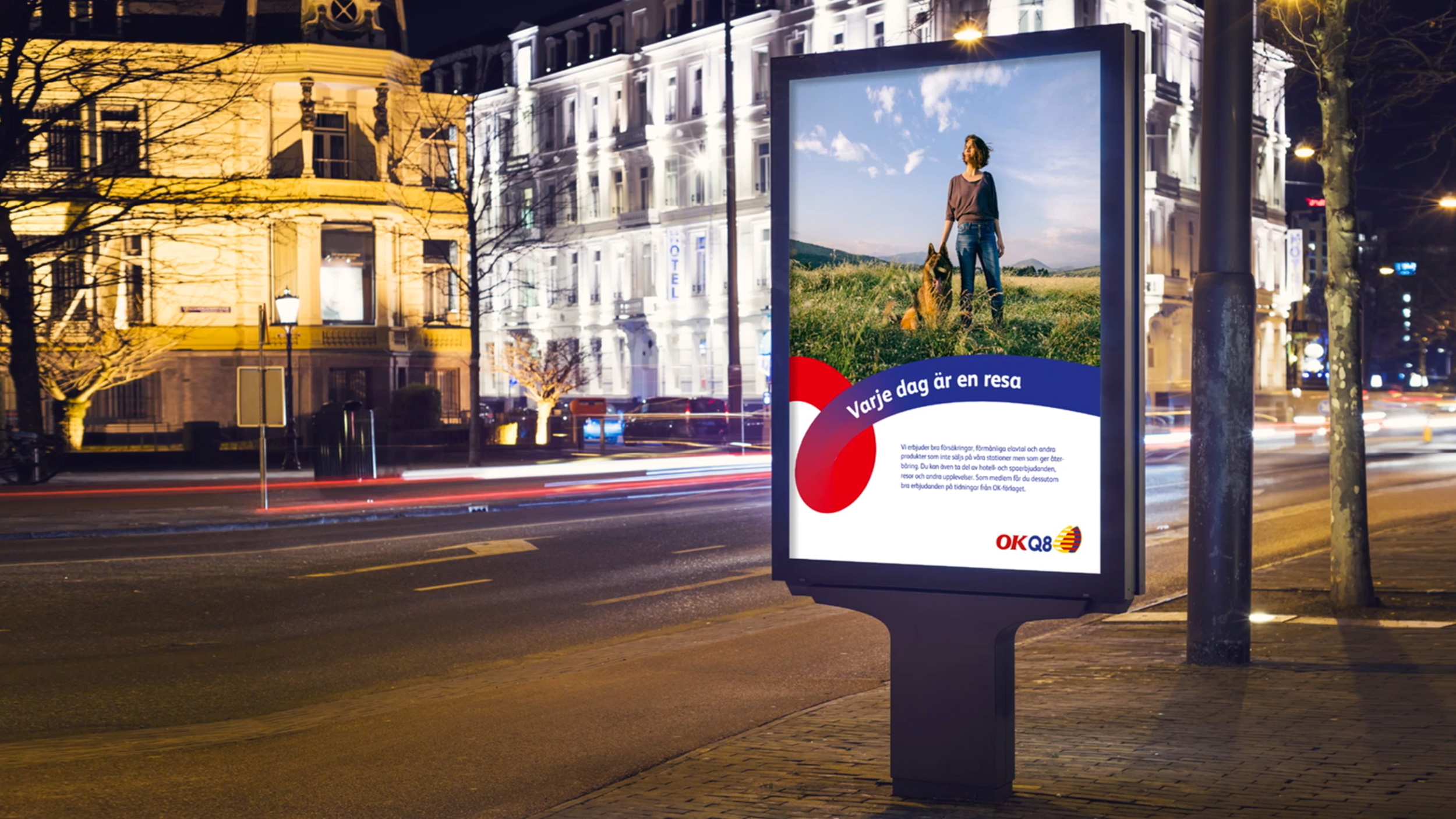 OKQ8 is one of Scandinavia's largest fuel companies. Formed by a merger of Swedish OK and Danish Q8. They needed a common graphic language that could unite the brand. A complex challenge, solved in a playful and dynamic way. The red and blue colour merged on a journey together.